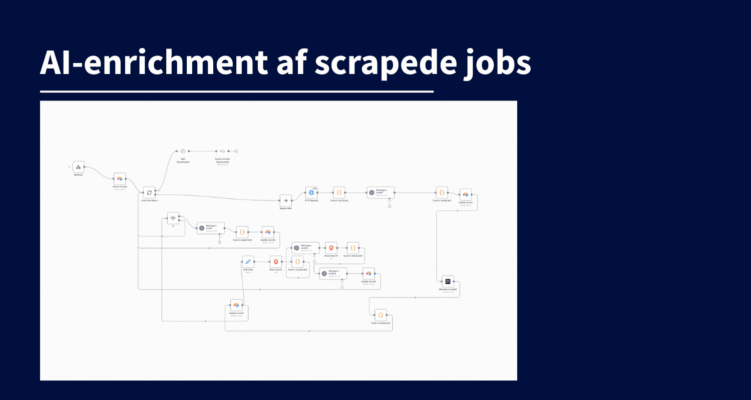 - Scraping af jobportaler for at finde relevante virksomheder at kontakte baseret på ny opslået jobs.